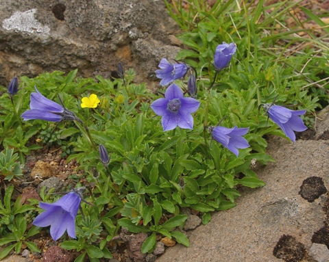 特徴等:イワギキョウとチシマギキョウは良く似ているが ・イワギキョウは上向き、花に毛はない、 ・チシマギキョウは下向きで花に絹毛がある。 ・イワギキョウは草原にも生育する。 |