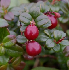 | 実は甘酸っぱくコケモモ酒が作られるがあまり美味しくない。湿原には「ツルコケモモ」が生育するが似ていない。 |