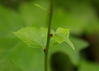 | 葉腋に出来るムカゴから子持の名前の由来。コウモリは葉っぱの形から。何とも面白い。 |