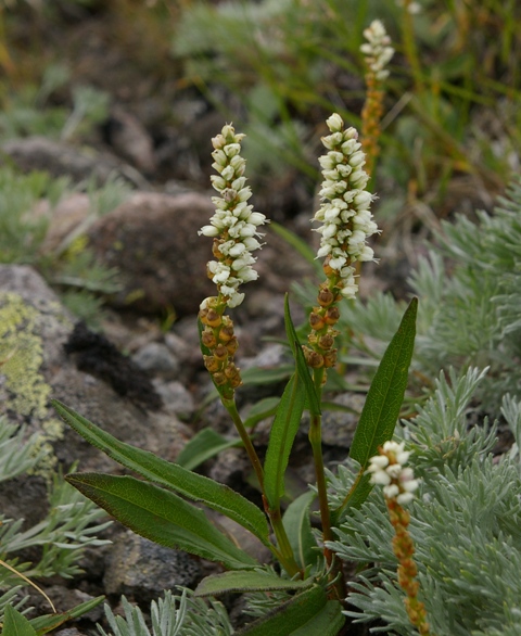 | 小泉岳の稜線では、礫地の間に良く見られる。花穂の下部が少し汚く見えるが、よく見ないとむかごとは思わない。 |
