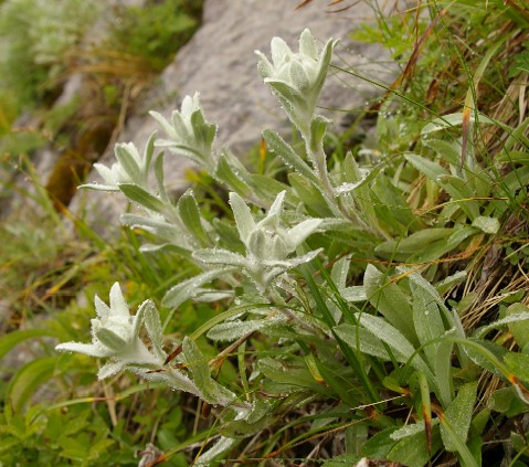 特徴等:ウスユキソウの分類の一つだが、この種の茎葉の基部は鞘になる。 |