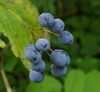 | 草丈:30−70cm 茎: 葉:大型の葉が2枚、上部に白い花が数個かたまって付く 花:茎の先にまとまってつき3−10個つき短い柄がある。花弁は6枚。 果実:濃い紫色。熟すと甘い。 |