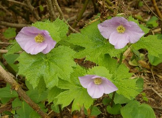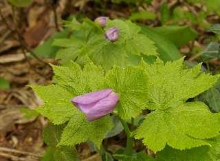 | 草丈:花時20−30cm。後40−50cm 茎:基部に短い膜質の鱗片が数個ある 葉:互生し葉柄があるものが2個と無柄のものが1個ある。葉身は腎円形−円形で掌状に7−11に中裂し、裂片は2−3中裂して鋭鋸歯があり両面に軟毛がある。 花:1個付く。花びらに見えるがく片は4、 果実: |