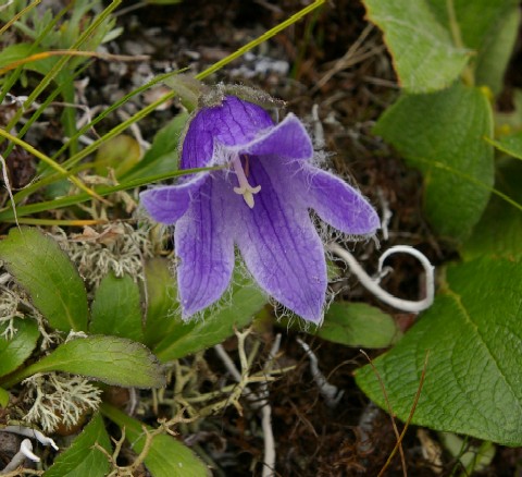 | チシマギキョウとイワギキョウは良く似ているがチシマギキョウは下向き、花に長い毛がある。イワギキョウはやや上向きに咲き毛は無い。 赤岳ー小泉岳を歩くと両種が見られる。チシマギキョウもイワギキョウも高山の花で好きな花である。 |