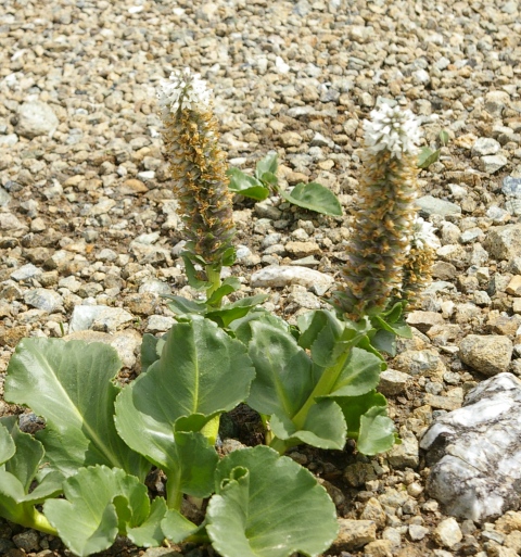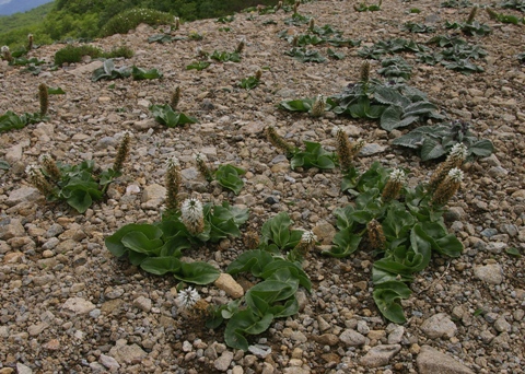 | 夕張岳の固有種。頂上近くの吹き通しの崩壊地で見られる。山開き(6月最終週)の後最初の日曜日に登ったが、花期には既に遅く花は上部にしか付いていなかった。フレッシュな花を見るためには山開きの前にもっと早く登らないと駄目なようだ。(あの長い林道を歩くのは嫌だな。日帰りが出来ないもの) |