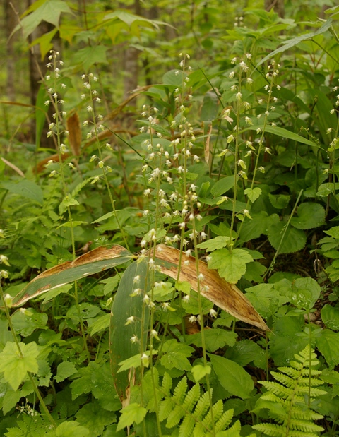 | 針葉樹林内のやや明るい所に群生する。「ズダ」というのは喘息の方言らしい。喘息の漢方薬に使われたのか? |