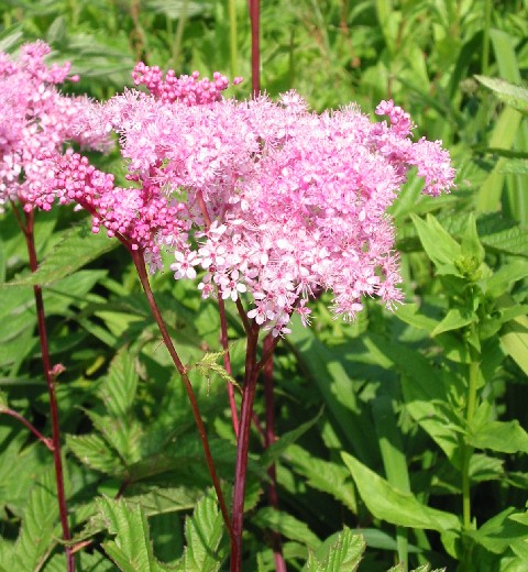 | 関東の実家の庭にはシモツケソウが植えられていた。梅雨入りの頃にピンクの花を咲かせていた。雨に濡れて重くなった花がうっとうしかったが(花が嫌なわけではなく梅雨が嫌いだった)、湿原や沢沿いで見られるこの花は実に美しく感じる。 |